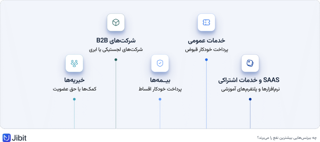 • B2B صورت‌حساب‌محور: شرکت‌های لجستیکی یا ابری با قراردادهای بلندمدت. همگام‌سازی برداشت با چرخه درآمد مشتری، موفقیت پرداخت را بیشتر می‌کند.